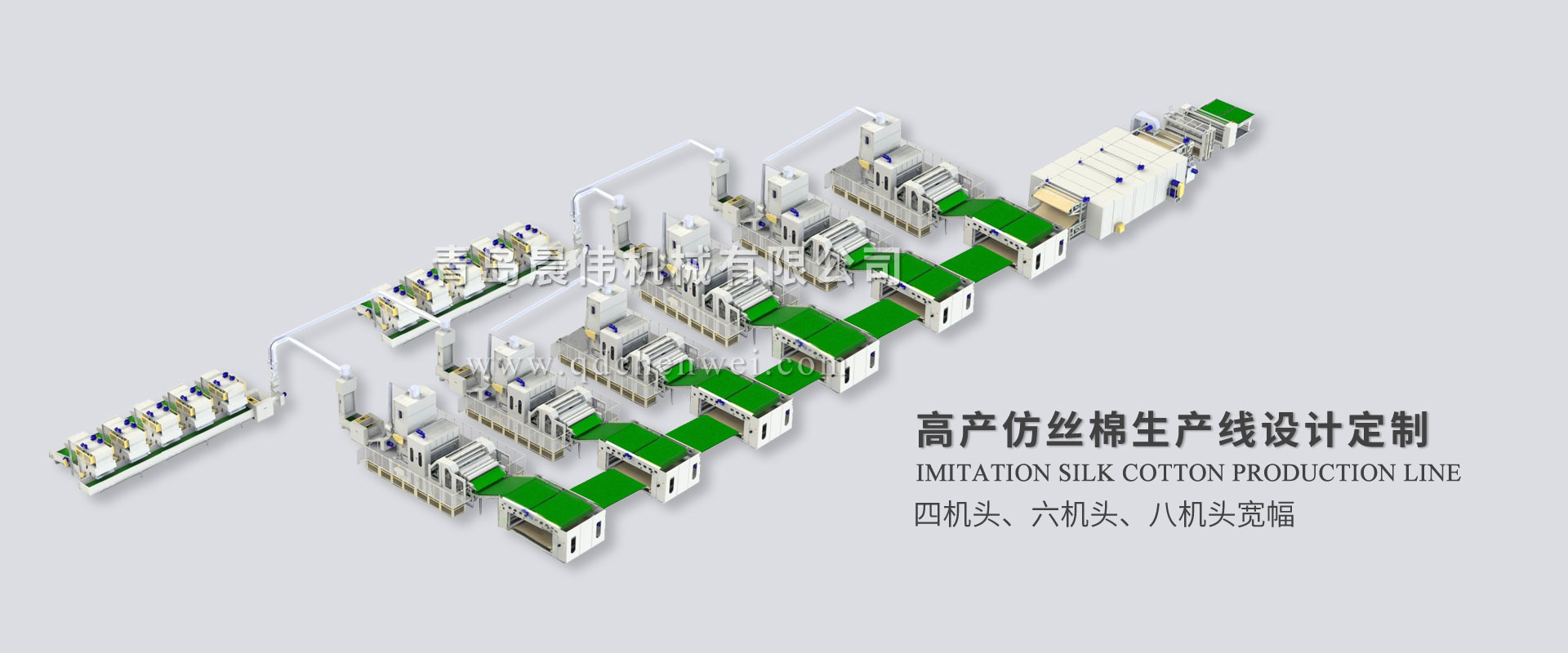 青島晨偉機(jī)械有限公司 專業(yè)設(shè)計(jì)定制各類無紡布單機(jī)設(shè)備及生產(chǎn)線。 我公司主要產(chǎn)品:電子秤重開包機(jī)、開松機(jī)、給棉機(jī)、氣壓棉箱、(高速)單錫林雙道夫梳理機(jī)、(高速)雙錫林雙道夫梳理機(jī)、鋪網(wǎng)機(jī)、中速針刺機(jī)、高速針刺機(jī)、烘箱/烘房、燙光機(jī)、熱軋機(jī)、收卷切片機(jī),無紡布設(shè)備、仿絲棉設(shè)備、防塵布設(shè)備、噴膠棉設(shè)備、無膠棉設(shè)備、硬質(zhì)棉設(shè)備、土工布設(shè)備生產(chǎn)線、椰棕床墊生產(chǎn)線、大棚保溫被生產(chǎn)線、蠶絲被生產(chǎn)線、床上用品設(shè)備等各種無紡布機(jī)械設(shè)備。